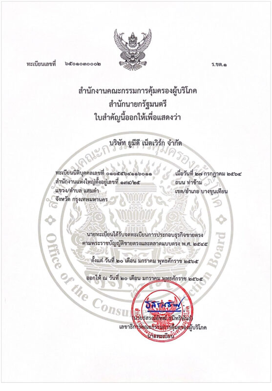 ใบอนุญาตจากสำนักงานคณะกรรมการคุ้มครองผู้บริโภค