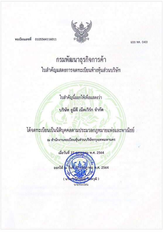 เอกสารรับรองอย่างเป็นทางการที่ออกโดย กรมพัฒนาธุรกิจการค้า กระทรวงพาณิชย์ เพื่อแสดงว่าธุรกิจได้จดทะเบียนและดำเนินการอย่างถูกต้องตามกฎหมาย ภายใต้หลักเกณฑ์ที่ภาครัฐกำหนด ใบอนุญาตฉบับนี้สะท้อนถึงความน่าเชื่อถือและความโปร่งใสของธุรกิจ รวมถึงเป็นการยืนยันว่ากิจการนั้นมีสถานะถูกต้องตามกฎหมาย สามารถประกอบธุรกิจได้อย่างมั่นใจและเชื่อถือได้ในสายตาของผู้บริโภคและพันธมิตรทางธุรกิจ