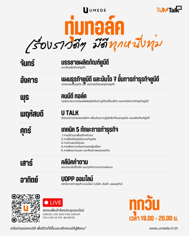 เพื่อให้ยูมีดีพาร์ทเนอร์ และผู้ที่สนใจในธุรกิจยูมีดีเข้าใจธุรกิจยูมีดีมากยิ่งขึ้น