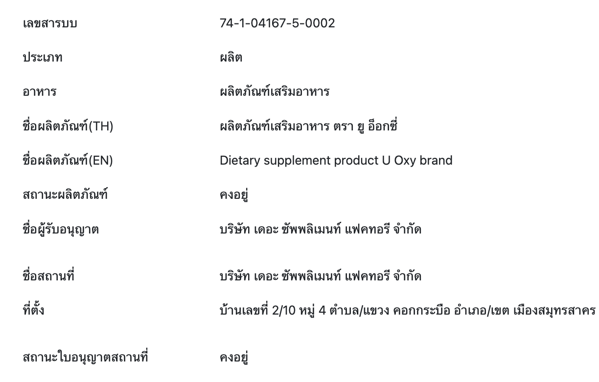 เลขจดแจ้ง อย. : 74-1-04167-5-0002
