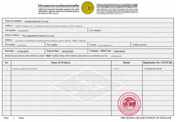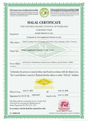 ได้รับการรับรอง มาตรฐานผลิตภัณฑ์ฮาลาล จากสำนักงานคณะกรรมการกลางอิสลามแห่งประเทศไทย