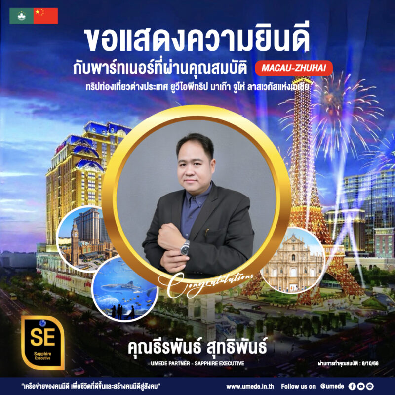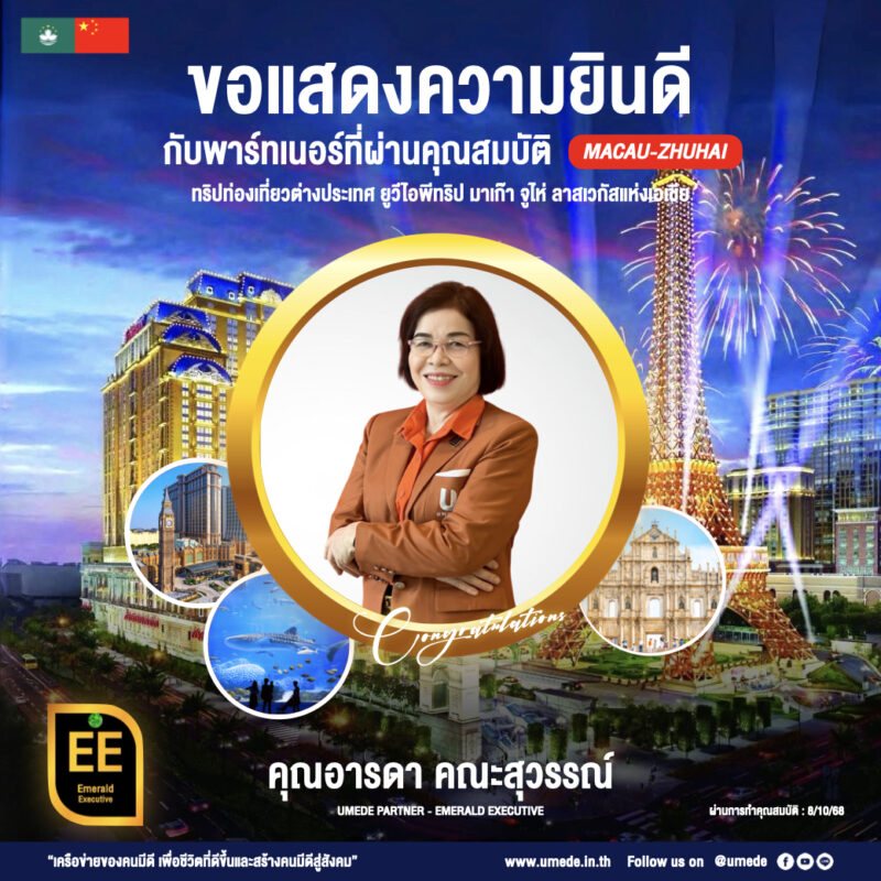 กับพาร์ทเนอร์ที่ผ่านคุณสมบัติทริปท่องเที่ยวต่างประเทศ ยูวีไอพีทริป มาเก๊า จูไห่ ลาสเวกัสแห่งเอเชีย เตรียมตัวออกเดินทางไปสัมผัสมนต์เสน่ห์แห่งแสงสีและวัฒนธรรม กับ ทริปสุดเอ็กซ์คลูซีฟ ที่ UMEDE จัดให้พาร์ทเนอร์เท่านั้น! ชมความอลังการของมาเก๊า ดื่มด่ำความโรแมนติกที่จูไห่ พร้อมกิจกรรมและประสบการณ์สุดประทับใจแบบ U VIP ที่ไม่เหมือนใคร